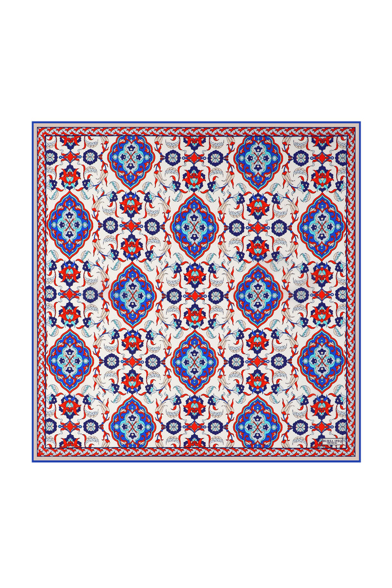 تجتمع الأنماط الأكثر خصوصية في تراثنا التقليدي مع الحرير مصحوبة بتفسيرات حديثة. نموذجنا المربع الفريد من نوعه من الحرير المزخرف بنمط التوليب باللون الأبيض الساكس مع زخرفة تركية، والمطرز بنسيج فريد، شغف المرأة الذي لا غنى عنه؛ فهو يوفر لك الراحة والأناقة التقليدية مع لمسة سميكة وناعمة وواسعة. منتجنا؛ يوفر سهولة الاستخدام بمحتواه الحريري بنسبة 100% وأبعاده 55x55 سم.