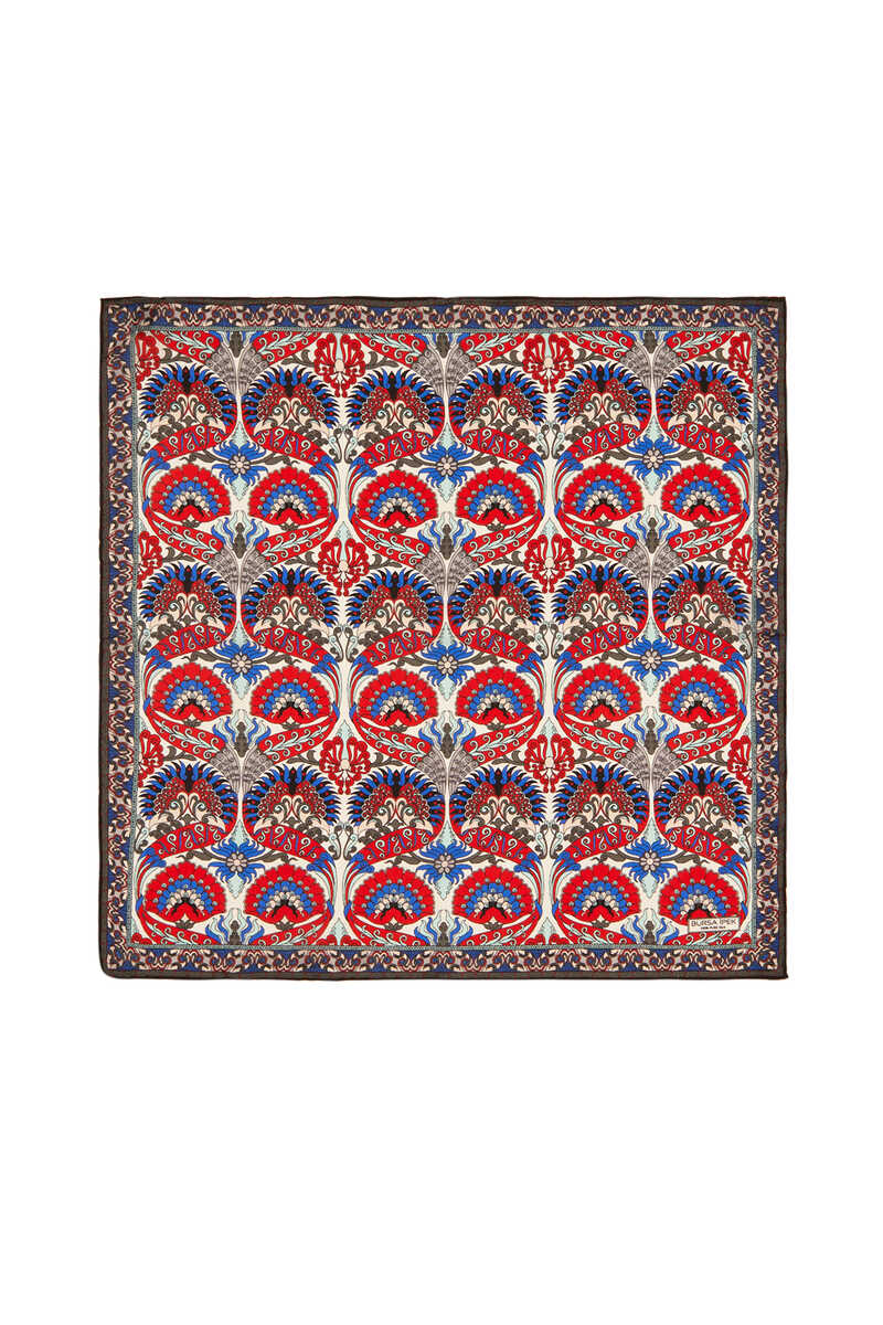 مربع جيب حرير بنمط طاووس أحمر أنثراسايت