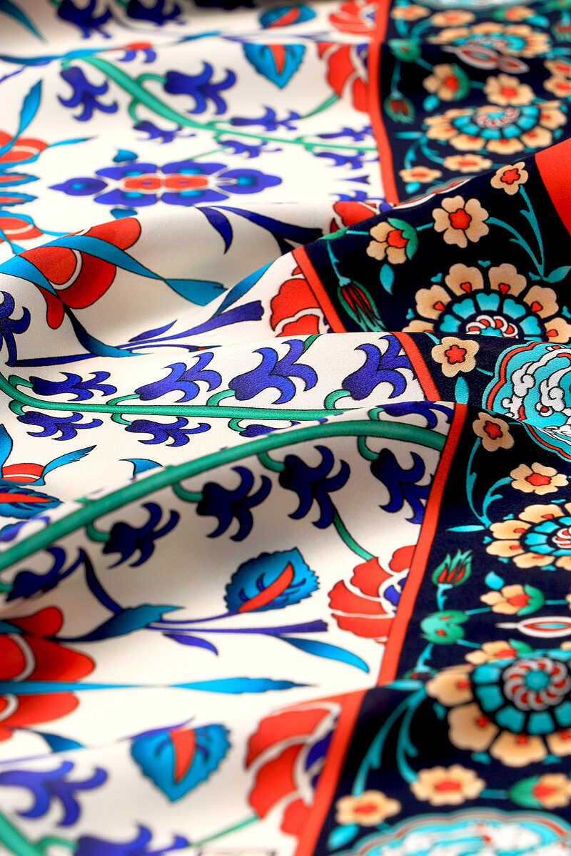 ستشعر بجو النزاهة في جمال مختلف مع وشاح Sura Silk Square ذو اللون الأحمر الداكن والأزرق الداكن، والذي ينعكس في أناقة الحرير الفريدة. منتجنا؛ يوفر سهولة الاستخدام بمحتواه الحريري بنسبة 100% وأبعاده 90x90 سم.