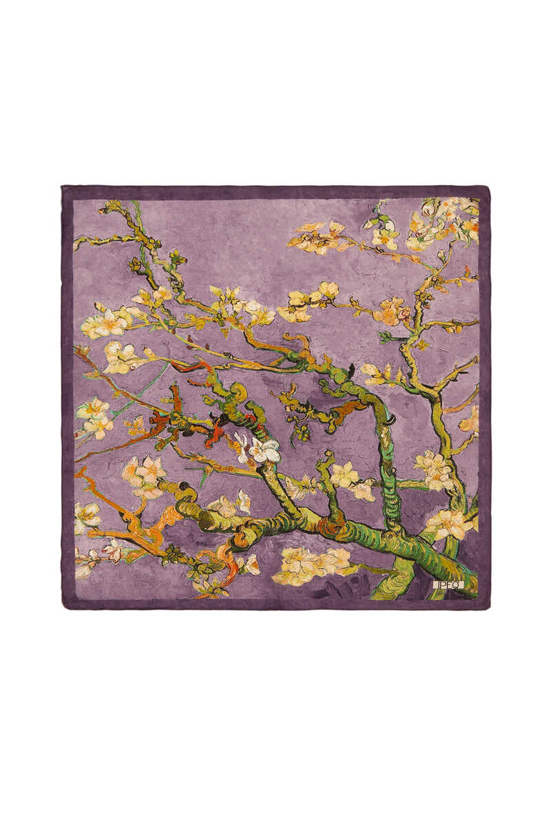 مربع الجيب الحرير زهرة اللوز الأرجواني