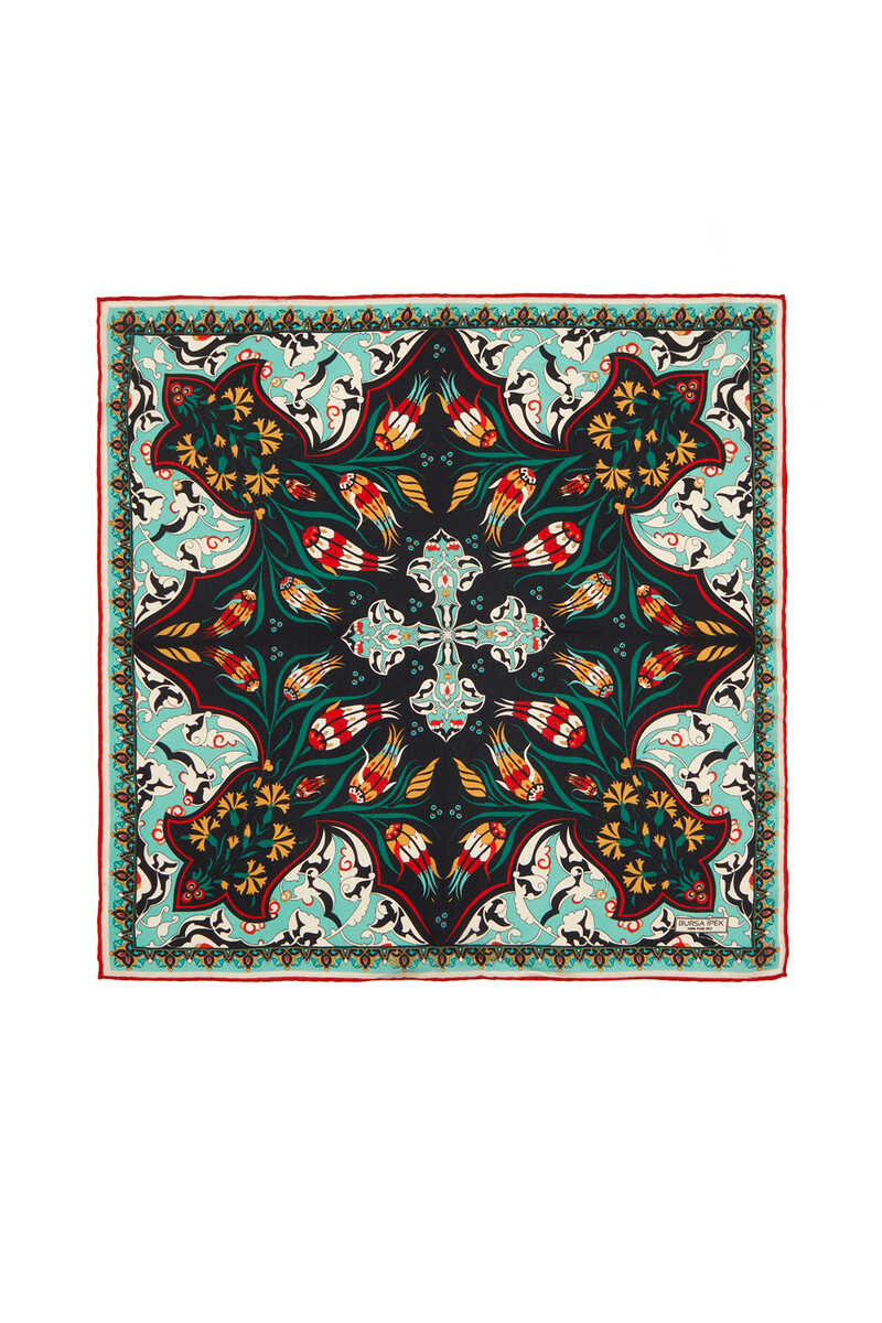 تلتقي الأنماط الأكثر خصوصية لتراثنا التقليدي مع الحرير مصحوبًا بتفسيرات حديثة. شغف النساء الذي لا غنى عنه ، موديل الجيب الحريري ذو اللون الأسود الفيروزي التركي ذو الجيب المربع مع نمط قرنفل الزنبق الفريد ؛ إنه يوفر لك الراحة والأناقة التقليدية مع لمسة سميكة وناعمة وواسعة. إنه يوفر راحة في الاستخدام بفضل محتواه من الحرير بنسبة 100٪ وأبعاده 55 × 55 سم.