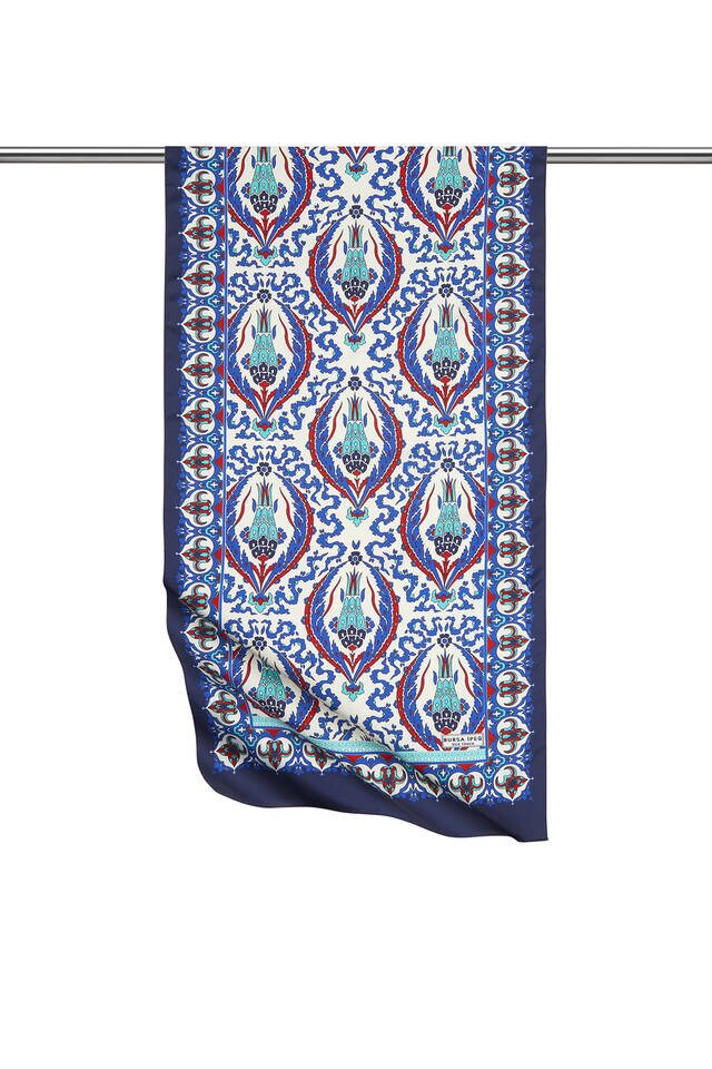وشاح مربع حرير بنمط تركي منقوش باللون الأزرق الداكن