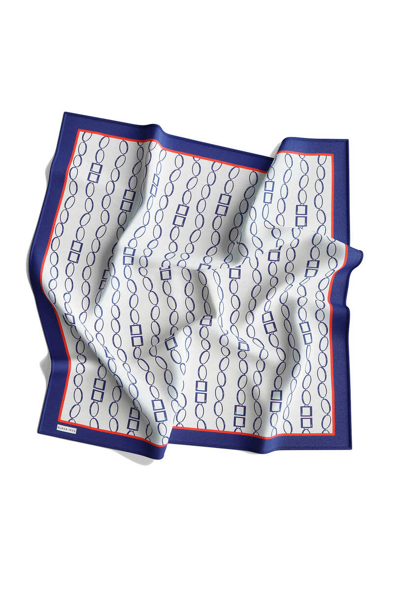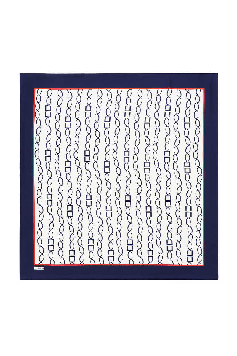 وشاح مربع من نسيج التويل الحريري بنمط سلسلة أزرق كحلي إكرو
