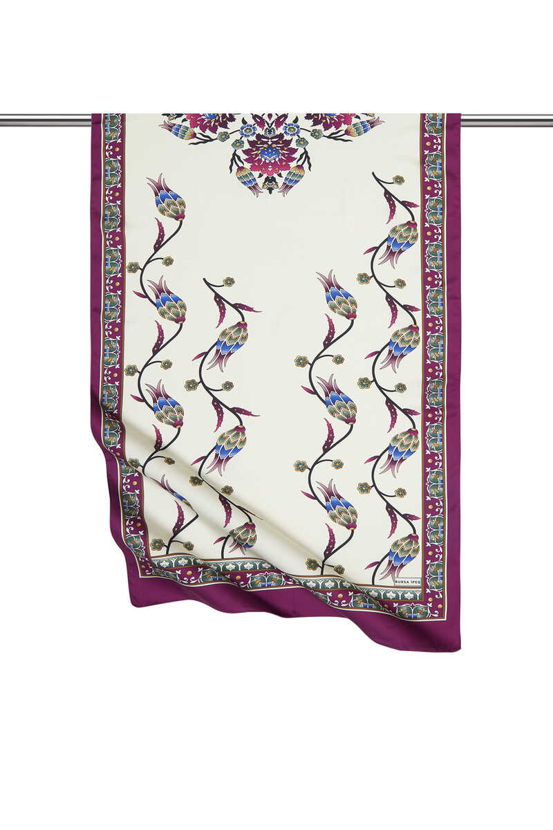 فولار حريري واسع بنمط توليب بنفسجي