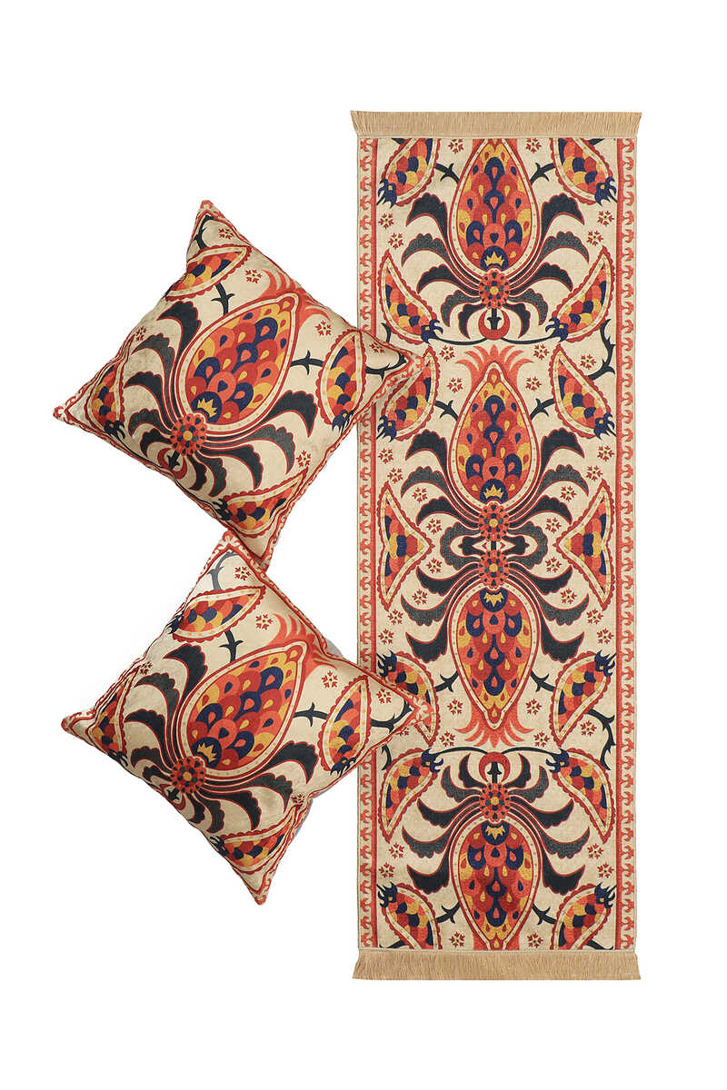 تُستخدم موديلات Runner الخاصة بنا ، التي تتميز بأنماط وتصميمات فريدة ، على المائدة أثناء وجبات الطعام أو لأغراض التزيين ، وهي مستطيلة الشكل ذات شكل ضيق طويل. يمكن استخدامه عن طريق وضعه على مفارش مائدة كبيرة أو كمفارش. يتم تقديم منتجنا حسب رغبتك بقماش مخملي بأبعاد 40 * 120 سم.