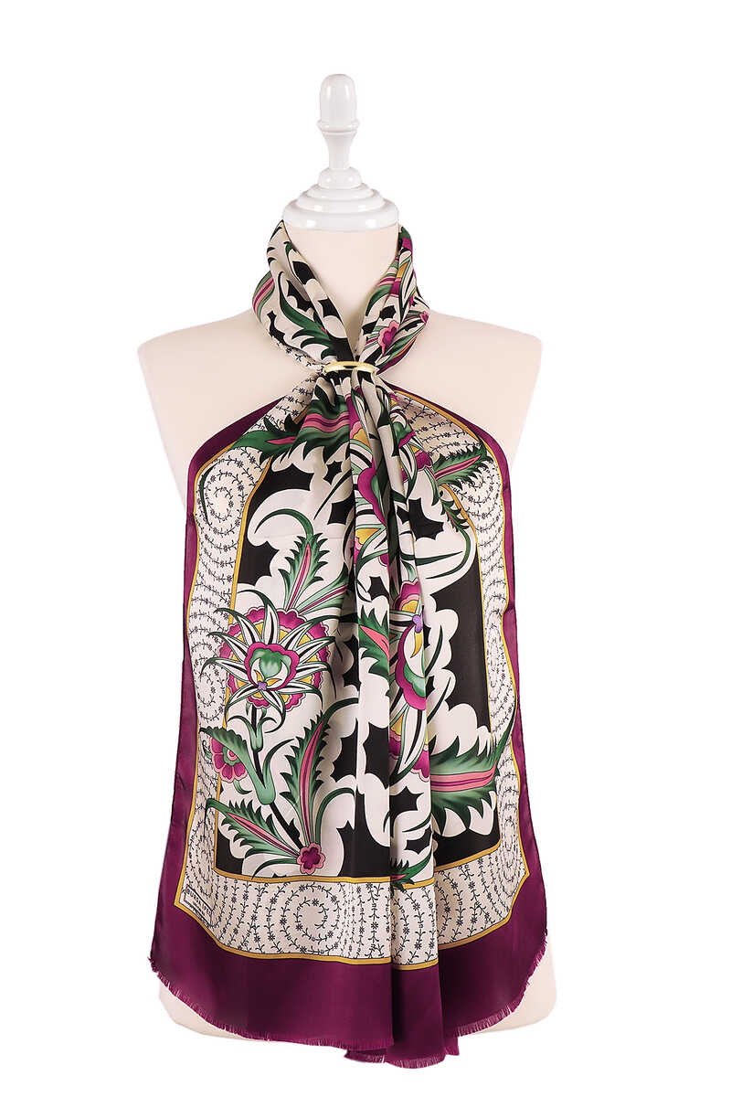 نموذج خاص يكمل أسلوبك، من اجتماع العمل الأكثر جدية إلى المعرض الفني الأكثر أناقة، مع إضافة الأناقة إلى أناقتك. يوفر نموذج الفولار الحريري ذو النمط القرني الذهبي ذو اللون البرقوقي مع الأنماط الجذابة سهولة الاستخدام بمحتواه الحريري بنسبة 100% وأبعاده 55 × 160 سم.