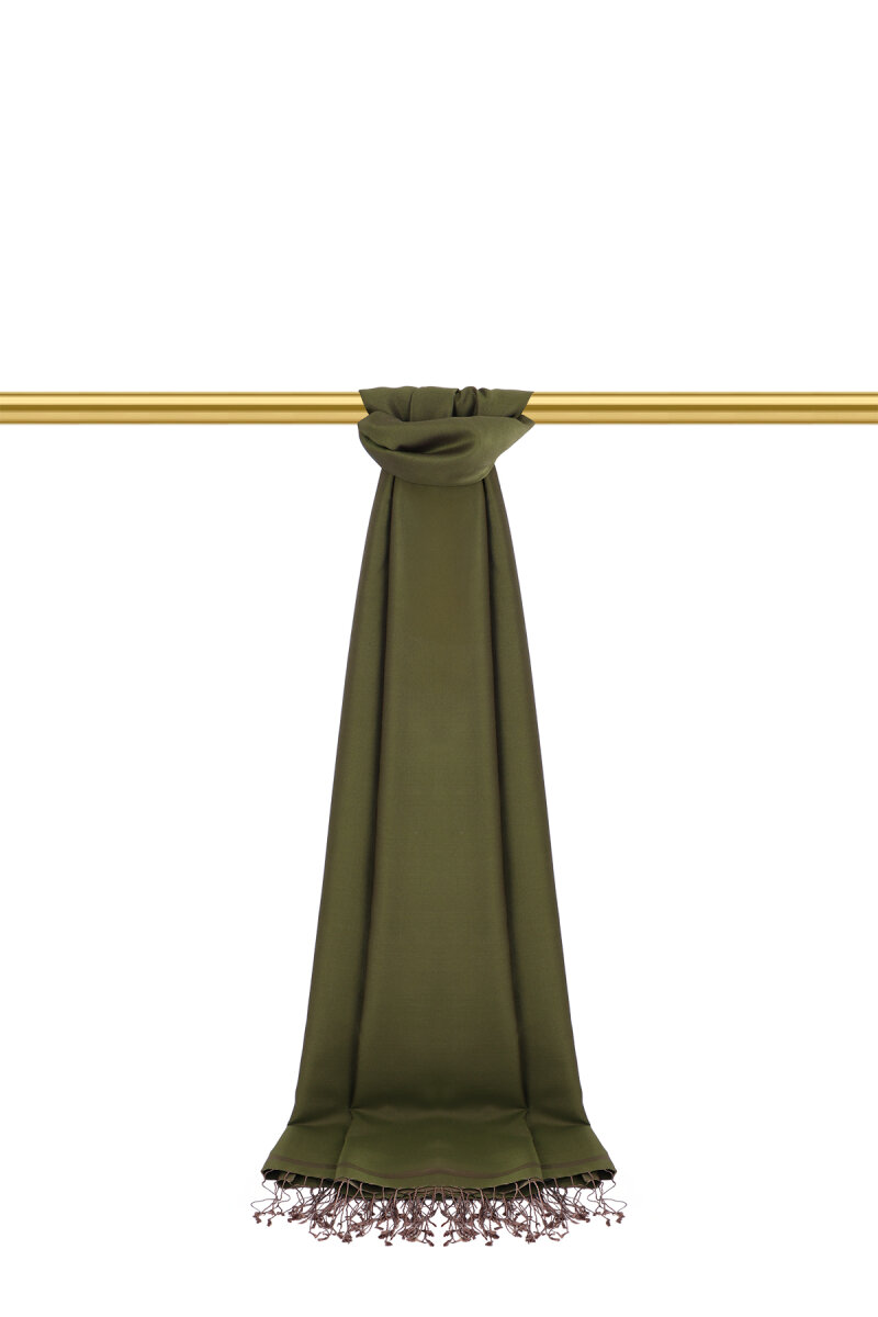 شال كاكي الحريري ذو الوجهين، رفيقٌ لا ينضب لإطلالتك الكلاسيكية والرياضية، يُضفي قيمةً على عالم الموضة المتألق بفضل سهولة استخدامه على كلا الجانبين، وبنيته المستقيمة والمتينة، ومظهره اللامع. يتميز منتجنا بسهولة الاستخدام بفضل محتواه الحريري 100% وأبعاده 70×200 سم.