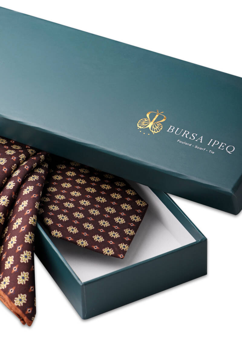 مجموعة ربطات عنق حريرية منقوشة باللون البني