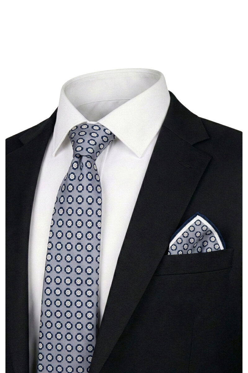 مجموعة ربطات عنق حريرية منقوشة باللون الرمادي