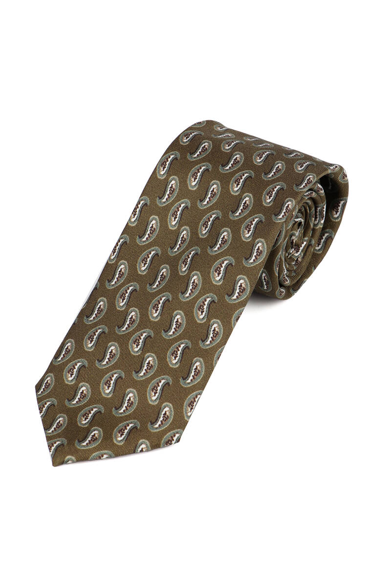 مجموعة ربطات عنق حريرية منقوشة باللون الكاكي