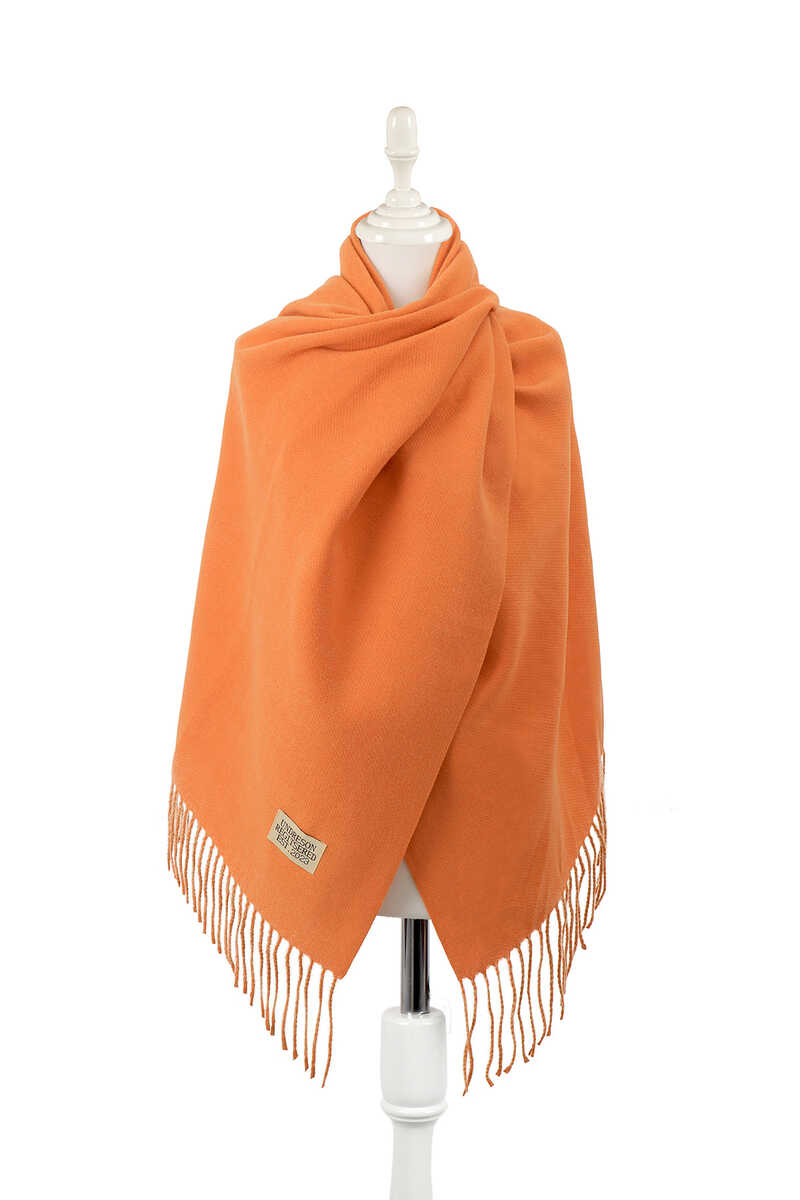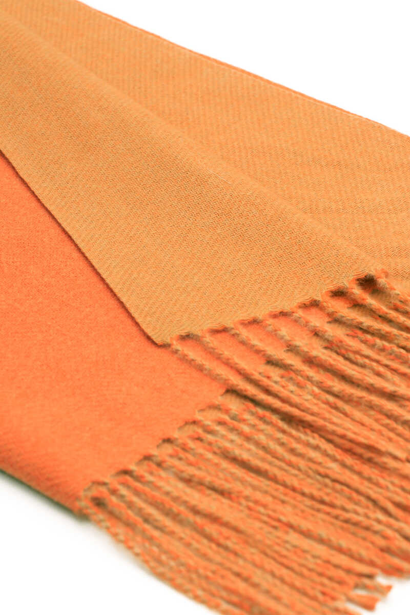 شال شتوي على الوجهين باللون البرتقالي والبيج