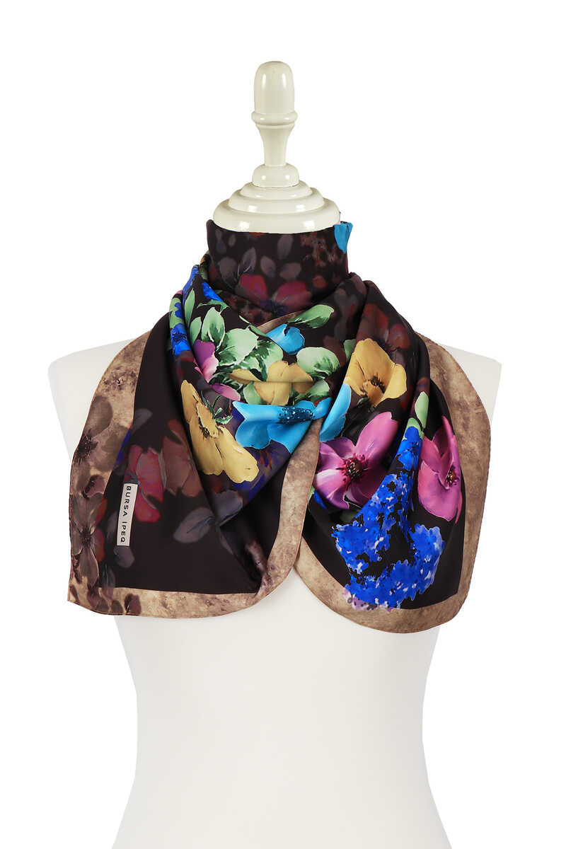 وشاح حريري بزهرة اللوز والشوكولاتة
