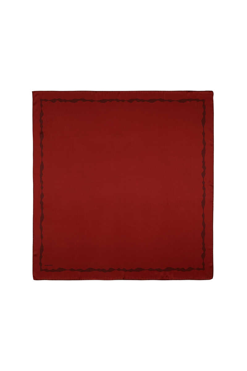 تتويجًا لمظهرك البسيط والبسيط ، وشاح مربع حريري بلون خمري بوقفة منتصبة وكاملة ، مع نمط موجة مائية على الحافة ، يلبي جميع الفصول بمجموعة ألوان واسعة في تصميمه بعيدًا عن كل التفاصيل ويرمز إلى التركيز من البساطة. يوفر راحة في الاستخدام مع محتواه من الحرير بنسبة 100٪ وأبعاد 90 × 90 سم.