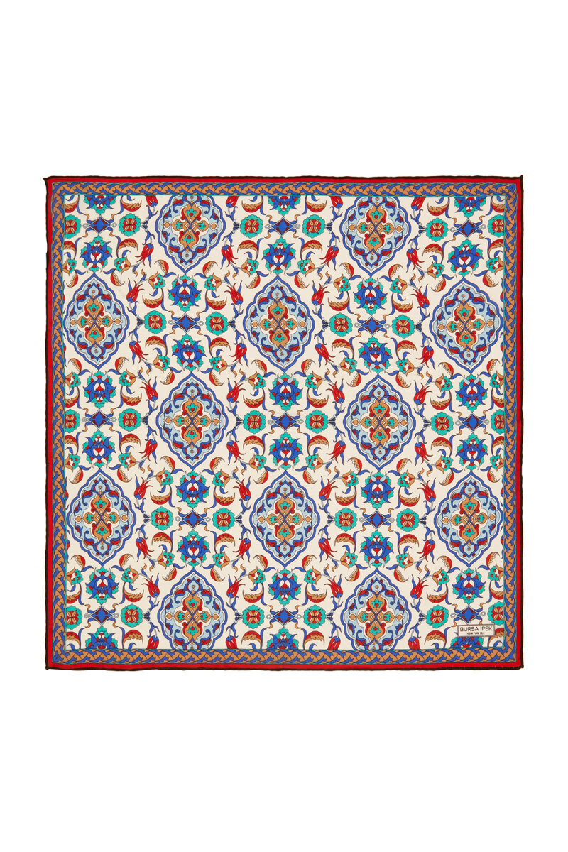 تلتقي الأنماط الأكثر خصوصية لتراثنا التقليدي مع الحرير مصحوبًا بتفسيرات حديثة. شغف النساء الذي لا غنى عنه ، نموذجنا الفريد من نوعه بنمط التوليب الحريري المزخرف بنسيج فريد من نوعه ؛ إنه يوفر لك الراحة والأناقة التقليدية مع لمسة سميكة وناعمة وواسعة. إنه يوفر راحة في الاستخدام بفضل محتواه من الحرير بنسبة 100٪ وأبعاده 55 × 55 سم.