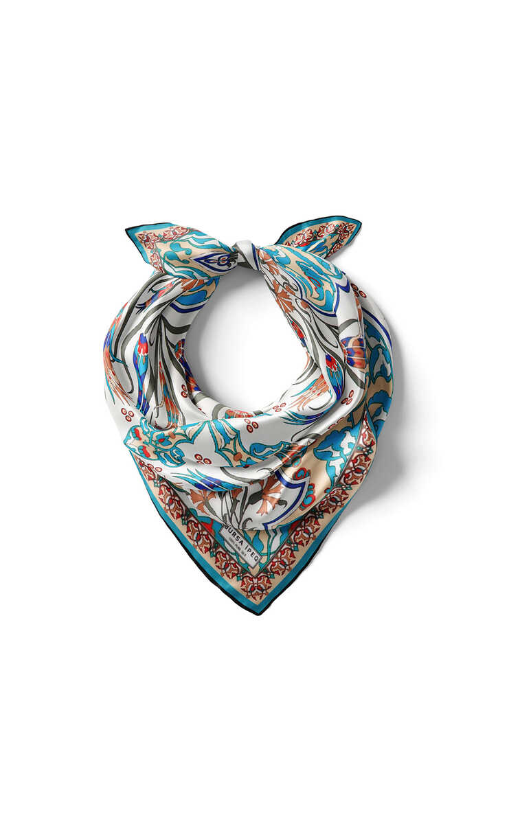 تجتمع الأنماط الأكثر خصوصية في تراثنا التقليدي مع الحرير مصحوبة بتفسيرات حديثة. موديل مربع الجيب الحريري الفريد من نوعه المزخرف بنمط زهرة القرنفل باللون الفيروزي مع زخرفة تركية، والمطرز بنسيج فريد، وهو شغف المرأة الذي لا غنى عنه؛ فهو يوفر لك الراحة والأناقة التقليدية مع لمسة سميكة وناعمة وواسعة. منتجنا؛ يوفر سهولة الاستخدام بمحتواه الحريري بنسبة 100% وأبعاده 55x55 سم.