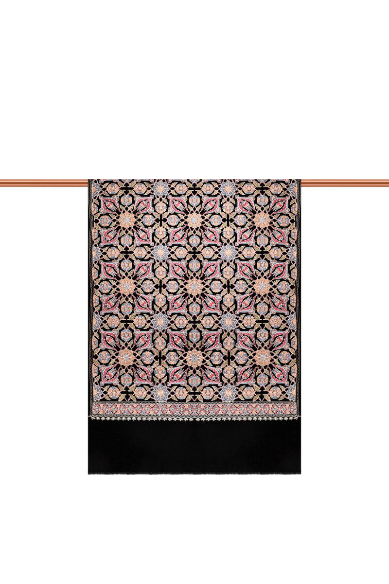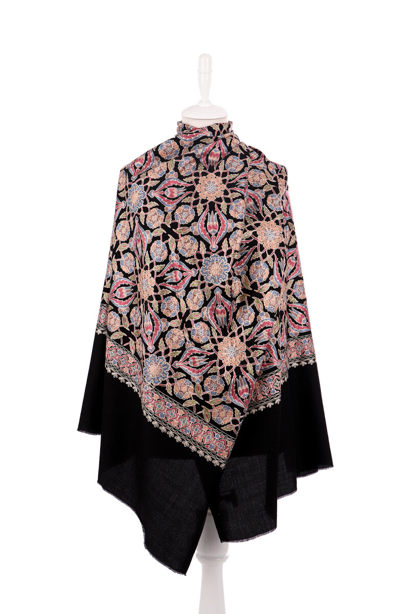 شال سوزاني الصوفي الأسود المطرز بالكامل