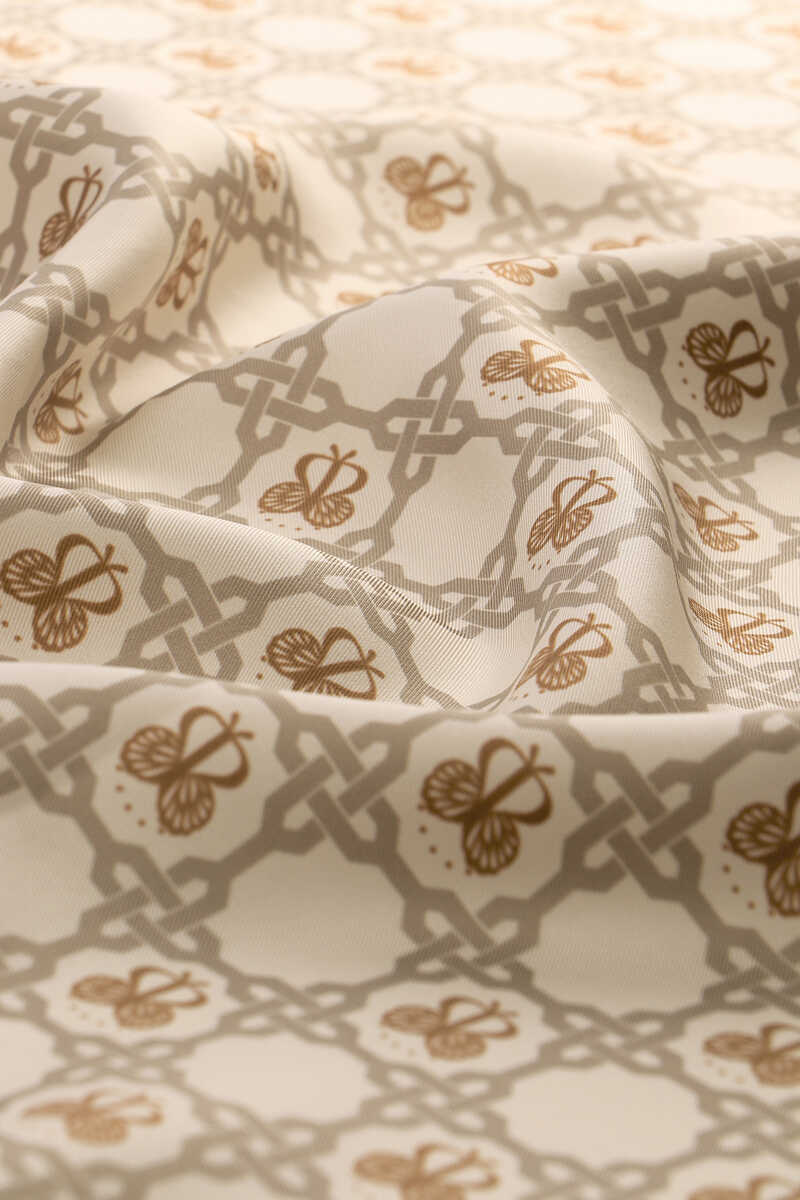 ستشعرين بأجواء النزاهة في جمال مختلف مع الوشاح المربع المصنوع من الحرير المصنوع من نسيج التويل ذو السلسلة الحجرية والذي ينعكس في أناقة الحرير الفريدة. منتجنا؛ يوفر سهولة الاستخدام بمحتواه الحريري بنسبة 100% وأبعاده 90x90 سم.