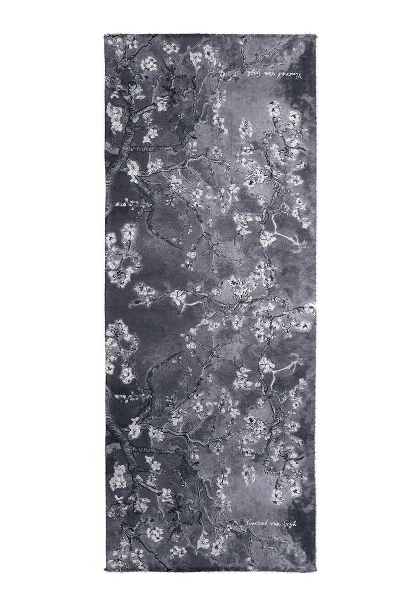 شال شتوي بنمط زهر اللوز الرمادي