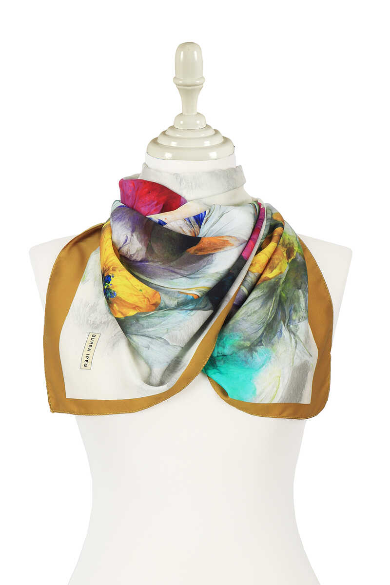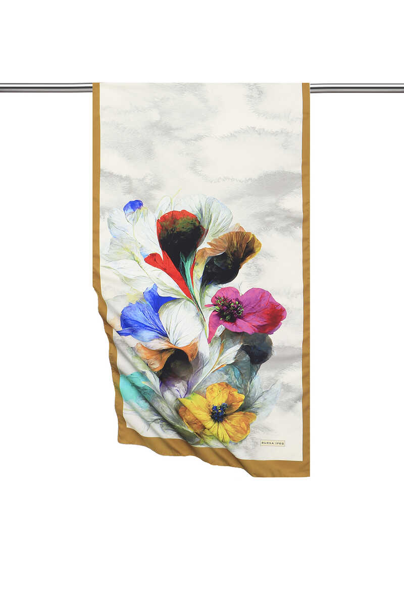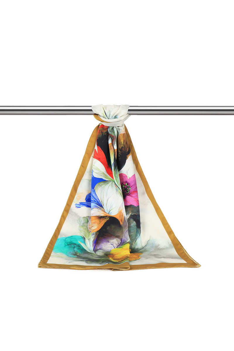 وشاح حريري بلون الخردل الداكن وزهر اللوز
