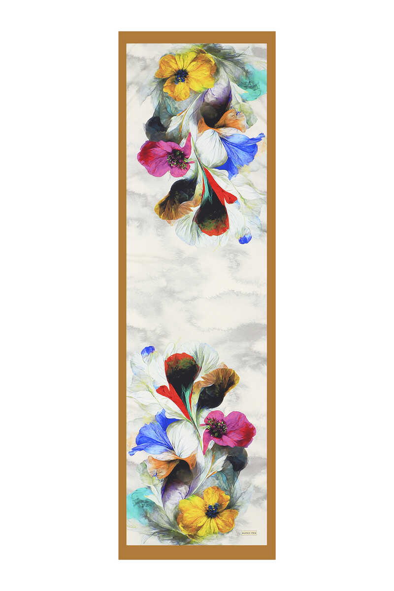وشاح حريري بزهرة اللوز والشوكولاتة