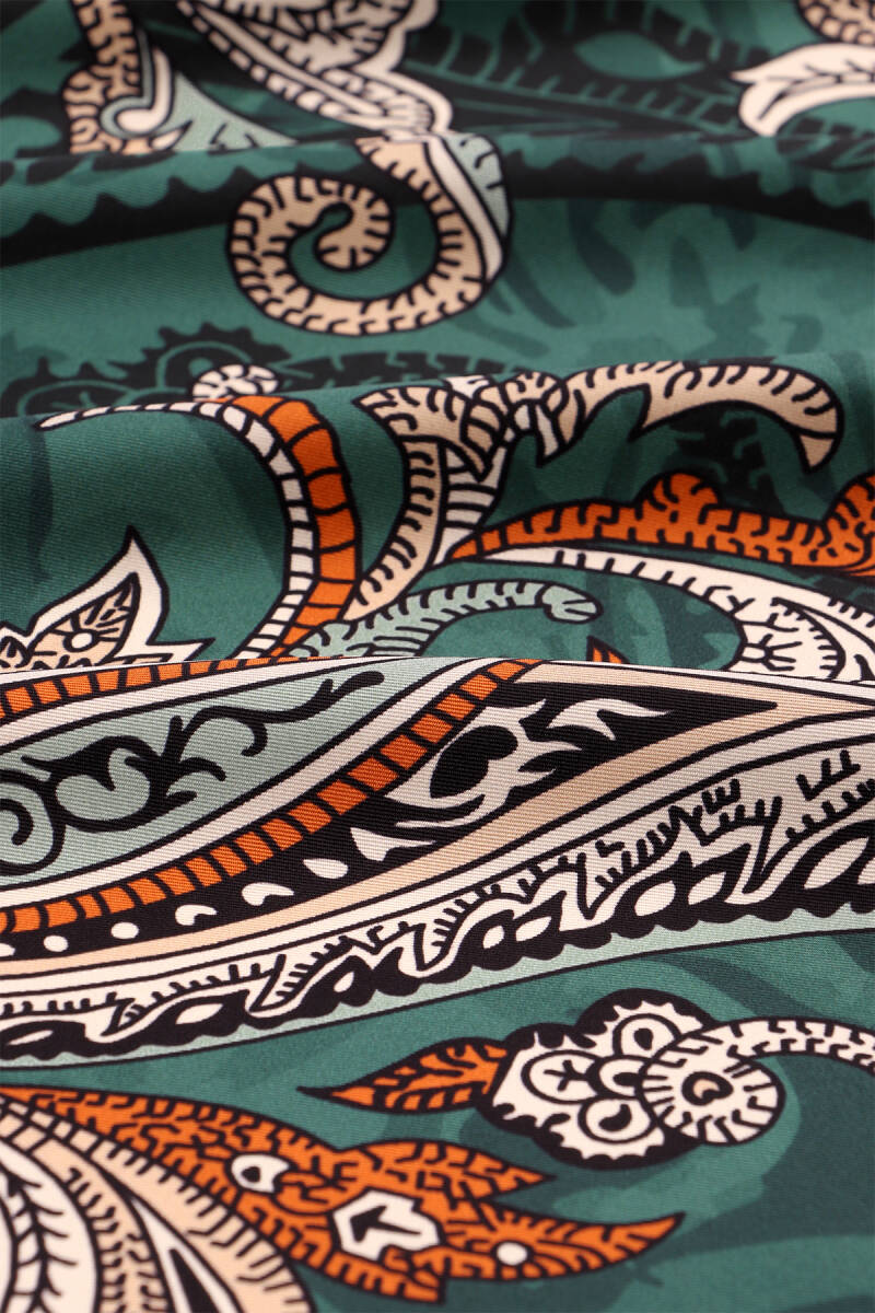 وشاح "إميرالد بايزلي" الحريري المائل رمزٌ للأناقة الخالدة، يجمع بين الزخارف الكلاسيكية واللمسة العصرية. بفضل تدرجات ألوانه الزاهية ونقشاته البازلية الأنيقة، يُعدّ هذا الوشاح قطعةً أساسيةً للإطلالة اليومية والمناسبات الخاصة. مصنوع من حرير مائل 100%، بمقاس 90 × 90 سم، مما يوفر سهولة في الاستخدام.