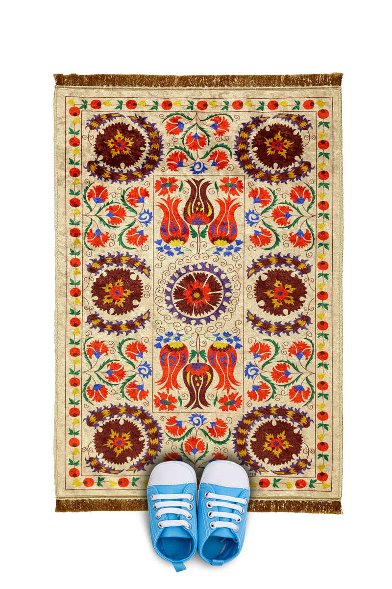 سجادة صلاة للأطفال باللون الكريمي المخملي