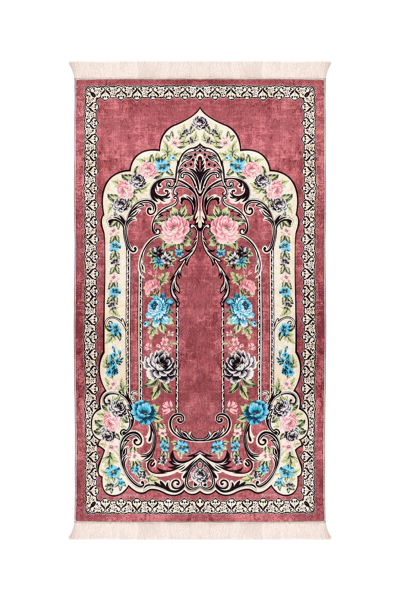 سجادة صلاة مخملية مع إسفنجة وردية اللون