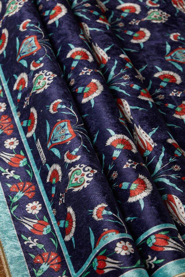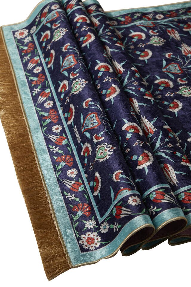 سجادة صلاة من المخمل باللون الأزرق الداكن