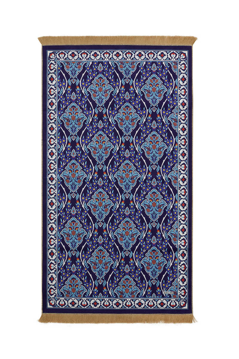 سجادة صلاة من المخمل باللون الأزرق الداكن