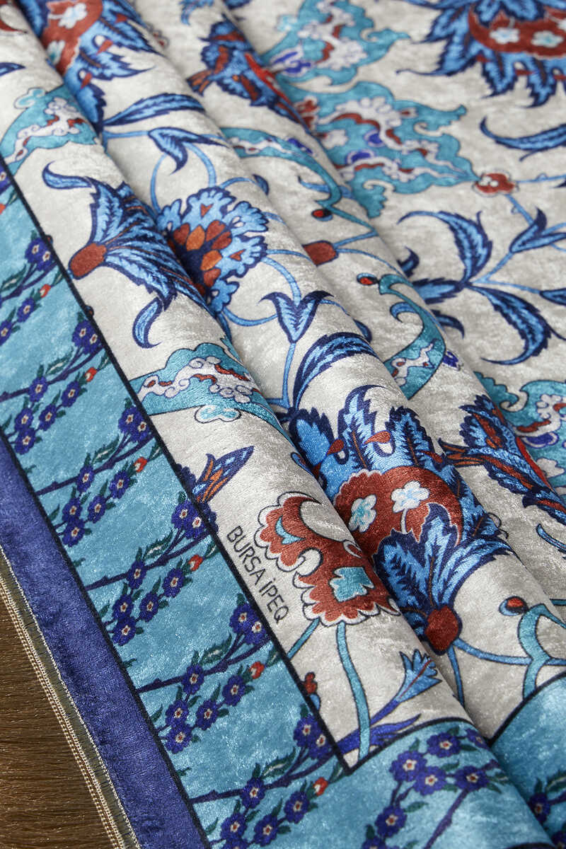 سجادة صلاة من المخمل باللون الأزرق الداكن