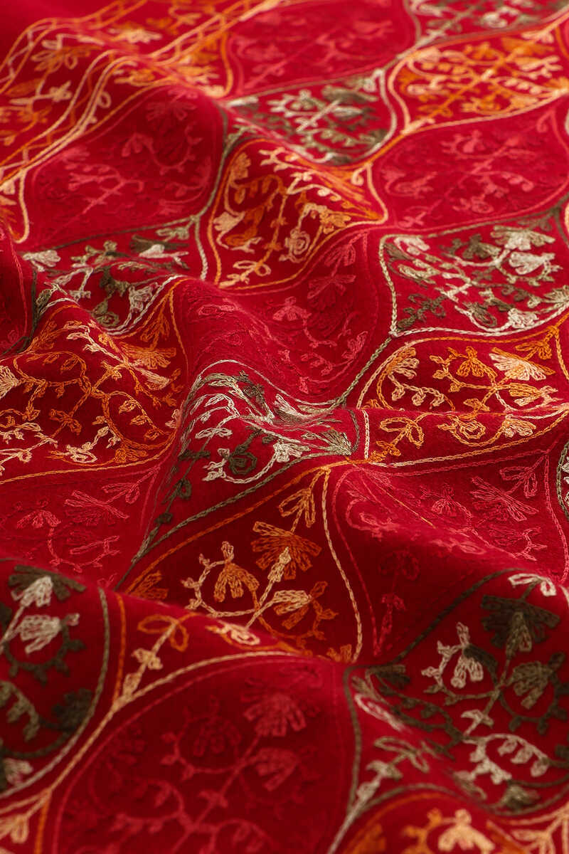 شال شتوي أحمر مطرز
