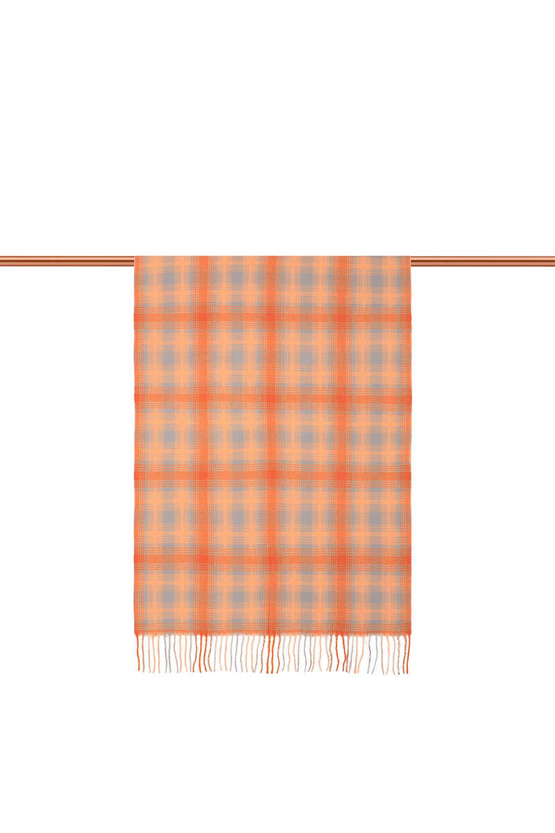 شال شتوي منقوش باللون البرتقالي والرمادي