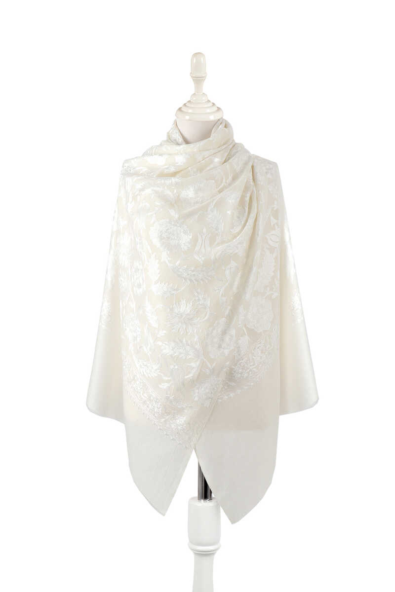 شال سوزاني من الصوف باللون البيج الفاتح مطرز بالكامل