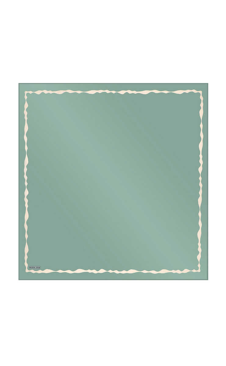 وشاح مربع من الحرير بموجة الماء بحافة نعناعية