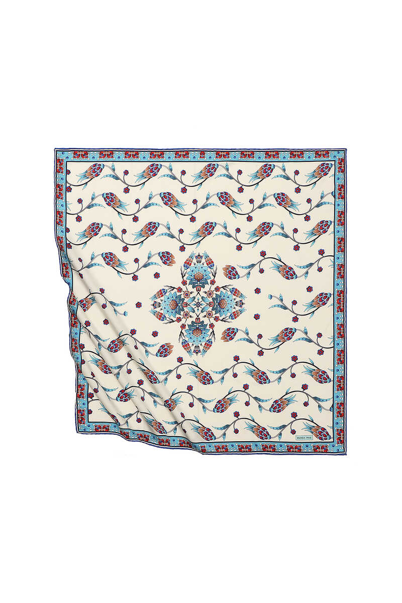 خيار ممتع وكلاسيكي حيث تجتمع أنماط Blue Row Tulip مع ملمس القماش الحريري والألوان الزاهية والنابضة بالحياة... أضف الطاقة إلى الحياة مع الملمس الحريري للزهور! منتجنا: نسيج رايون حريري 100% يوفر سهولة الاستخدام بأبعاده 90x90 سم.