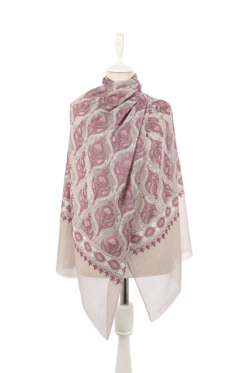 شال من الصوف والحرير مع تطريز حجر وردي باهت