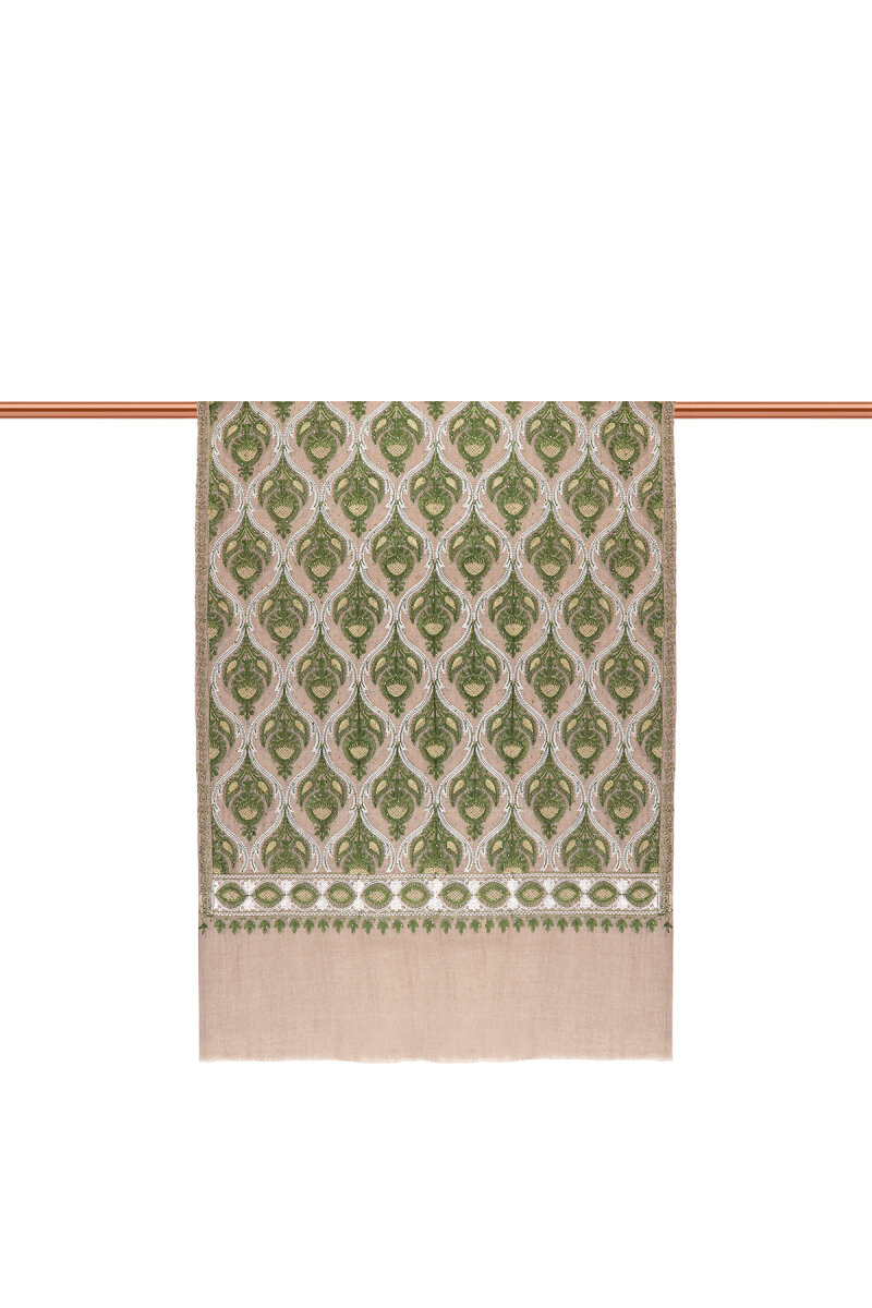 شال من الصوف والحرير مطرز بحجر بلون القهوة اللبني الأخضر