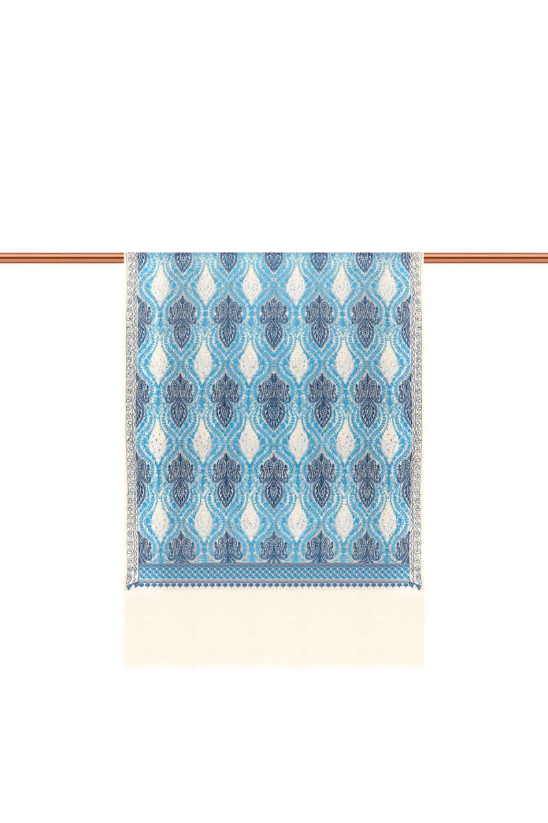 شال من الصوف والحرير مطرز بحجر أزرق كريمي