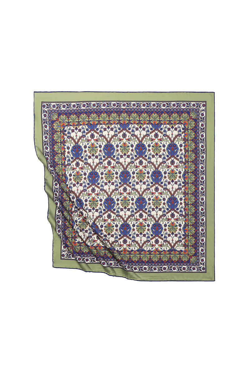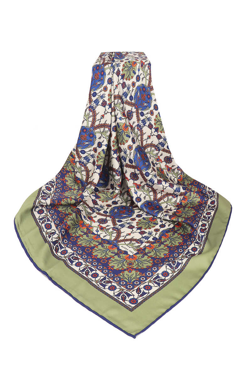 وشاح مربع حريري بنمط توليب من البلاط الكاكي