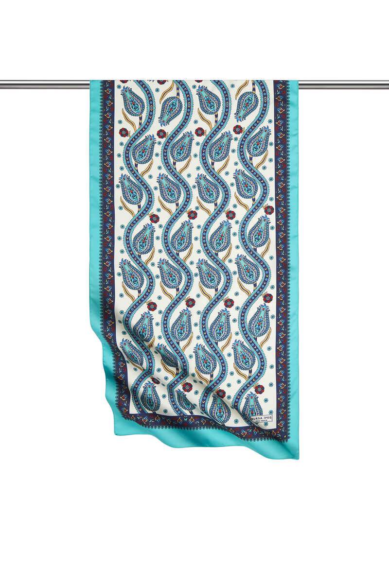 أزرق كحلي أخضر صف توليب نمط ضيق حريري فولارد
