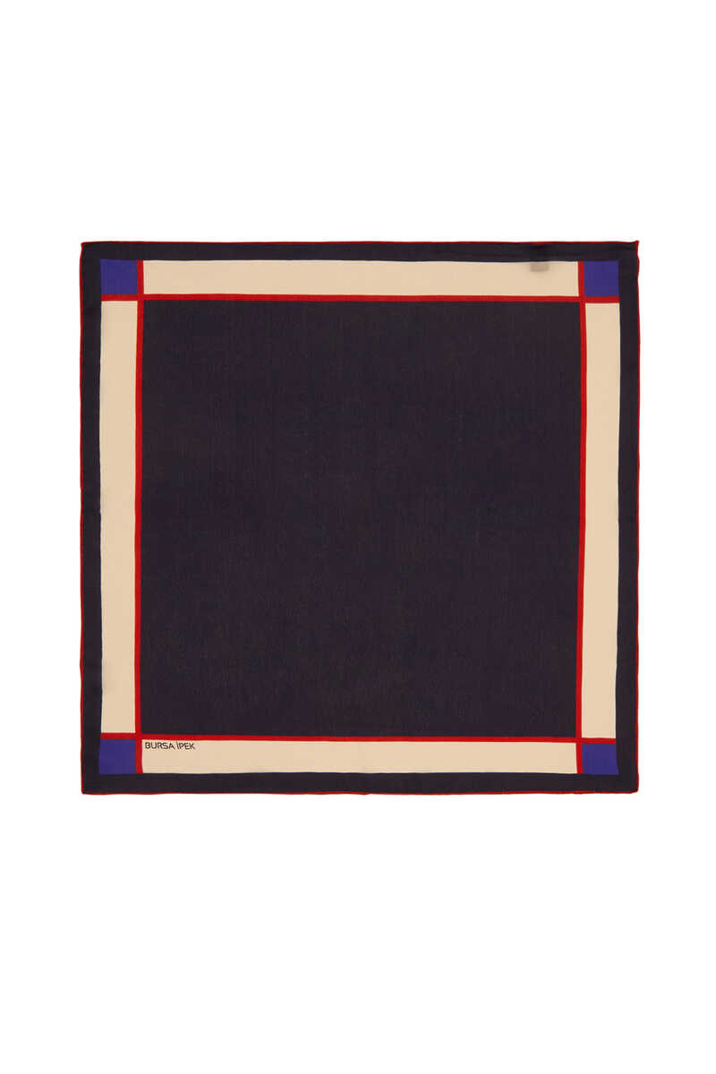 كحلي داكن ذو حدود واسعة من الحرير العادي مربع الجيب