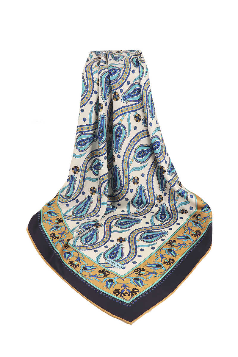 وشاح مربع حريري بنمط اللبلاب باللون الأزرق الداكن