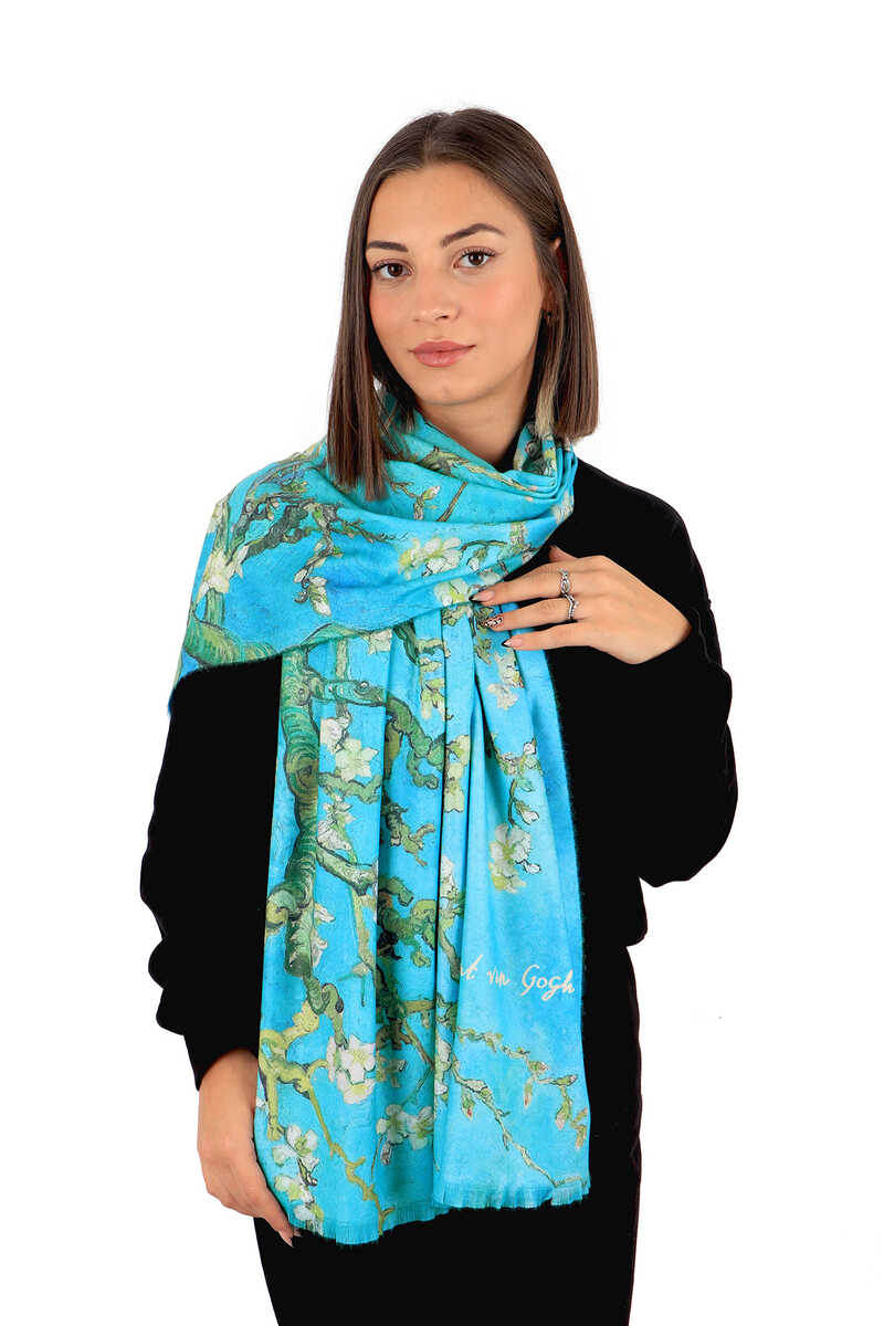 شال شتوي بنمط زهر اللوز الأخضر المائي