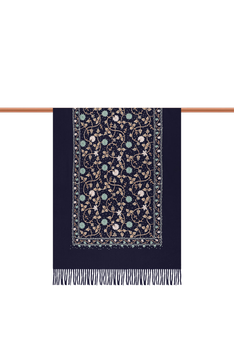 شال شتوي مطرز بحجر أزرق داكن