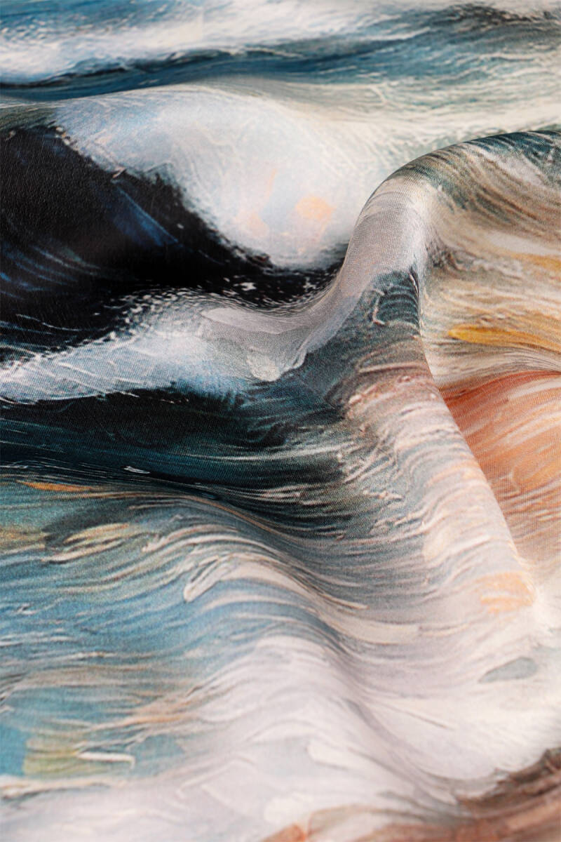 مع نقشة طيور النورس الزرقاء المنعكسة في أناقة الحرير الفريدة، ستشعرون أنتم أيضًا بجوّ الوحدة في جمالٍ مختلف. منتجنا، المصنوع من حرير 100%، بأبعاد 55×55 سم، يوفر سهولة الاستخدام.
