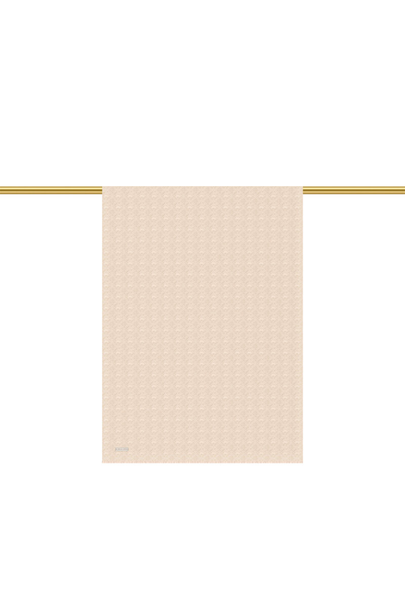 شال حرير قطني بنقشة مونوغرام باللون البيج