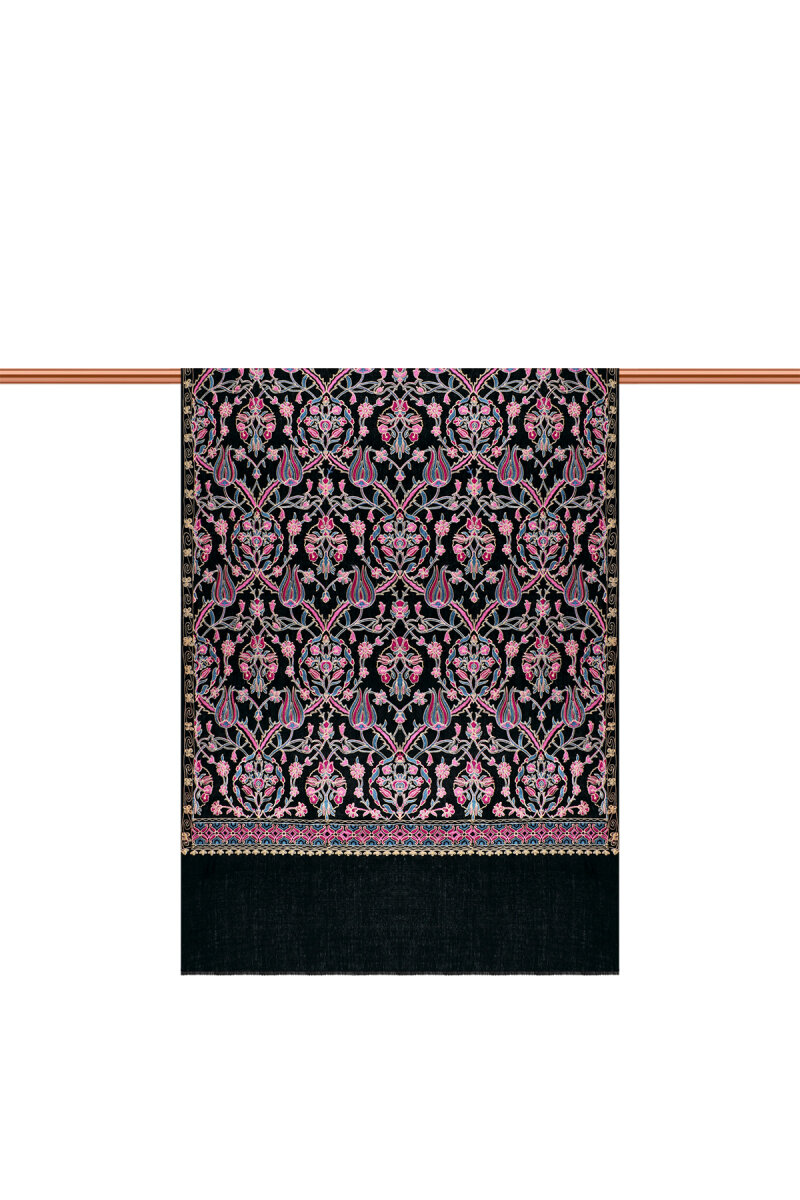 شال صوف مطرز بنقشة زهرة التوليب باللون الفوشيا الأسود