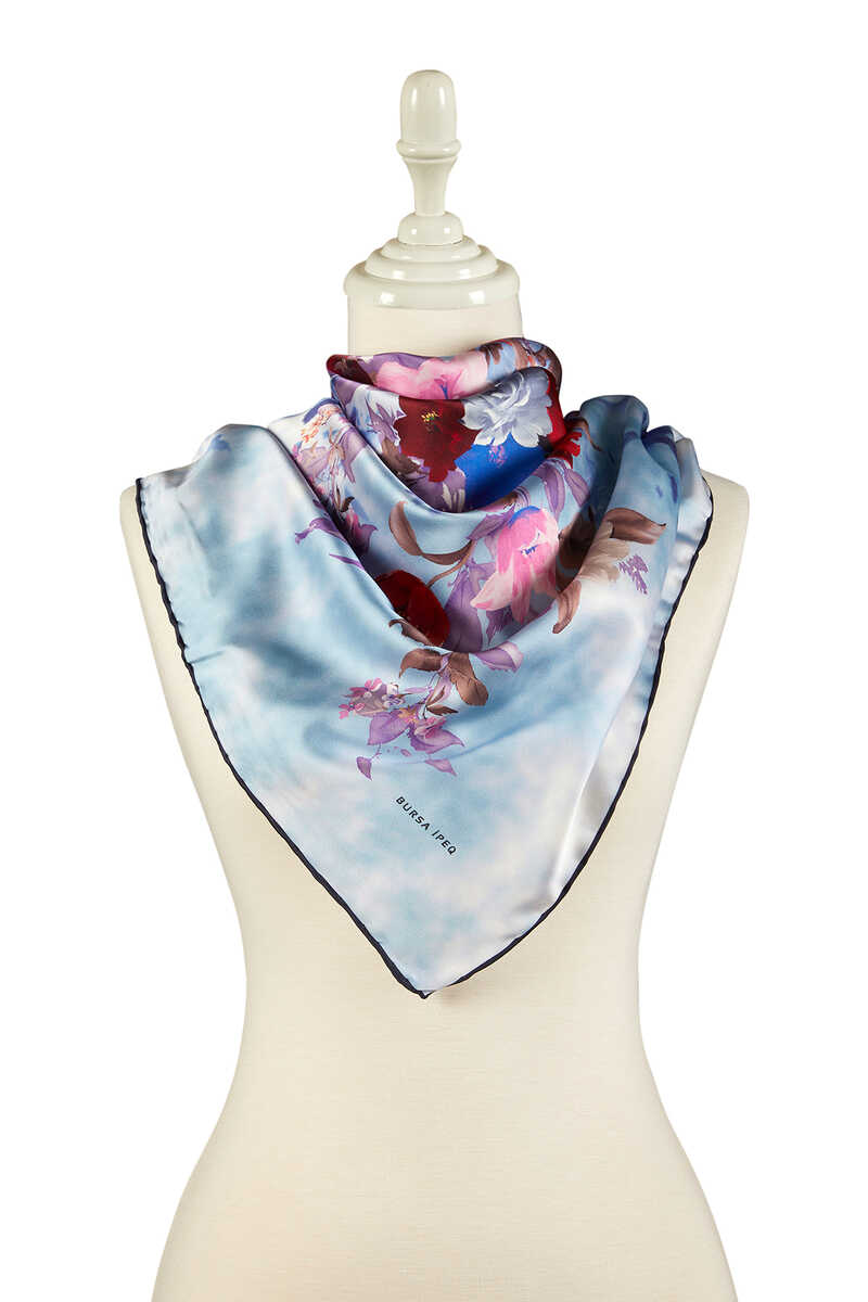 خيار مرح وكلاسيكي حيث تجتمع أنماط الباقة الزرقاء مع نسيج حريري وألوان زاهية ونابضة بالحياة ... أضف الطاقة إلى الحياة مع نسيج الزهور الحريري! منتجنا: قماش حريري 100٪ يوفر سهولة في الاستخدام بأبعاد 90x90 سم.