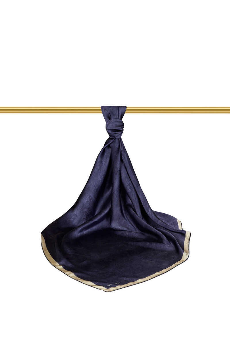 وشاح مربع من الحرير باللون الأزرق الداكن