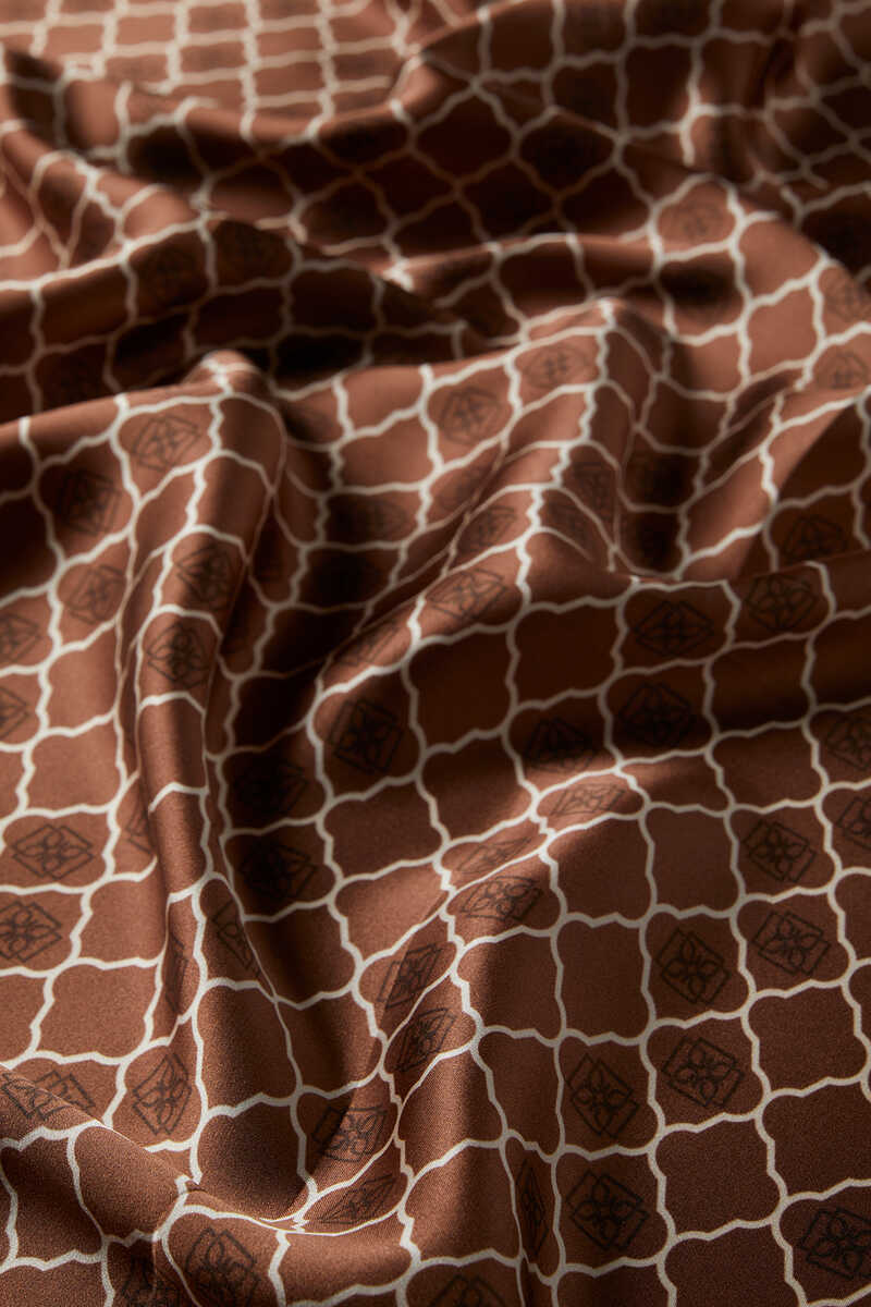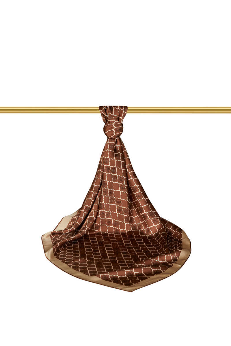 وشاح مربع من الحرير بنقوش أحادية الزوجة بني ، وهو الرفيق الأبدي لأسلوبك الكلاسيكي والرياضي ؛ بفضل شكلها المستقيم والصلب ومظهرها المشرق ، فإنها تضيف قيمة لك في عالم الموضة المتلألئ. يوفر راحة في الاستخدام مع محتواه من الحرير بنسبة 100٪ وأبعاد 90 × 90 سم.